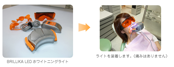 大宮・いけだ歯科クリニックでは、BRILLIKA LEDホワイトニングライトを使用しホワイトニングを行っています。小型軽量な器機ですので患者様への負担を軽減することができ、綺麗に歯をホワイトニングを行うことができます。