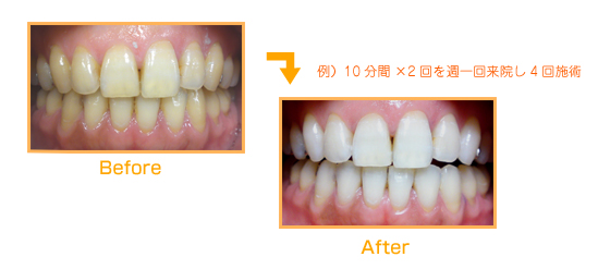 治療当日のみのホワイトニング。2回法に比べて効果は薄いが、即日に歯を白くし